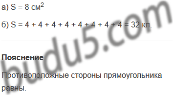 б) в клеточках: S = 4 + 4 + 4 + 4 + 4 + 4 + 4 + 4 = ... кл.