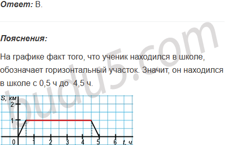 Утром ученик пошел в школу, а после уроков вернулся домой. На рисунке 40 изображен график зависимости расстояния между учеником и его домом от времени движения. Сколько часов ученик находился в школе?