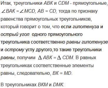 Из вершин В и D параллелограмма АВСD, у которого АВВС и угол А острый, проведены перпендикуляры ВК и к прямой АС. Докажите, что четырехугольник ВМDК - параллелограмм.